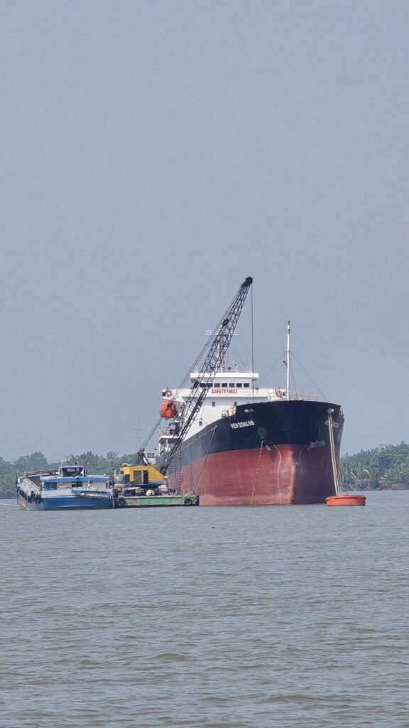 Daarna terug naar Saigon, net als vorige keren een rit van 4 uur met onderweg een ferry en een veerpont. Onderweg nogal wat schepen gezien.