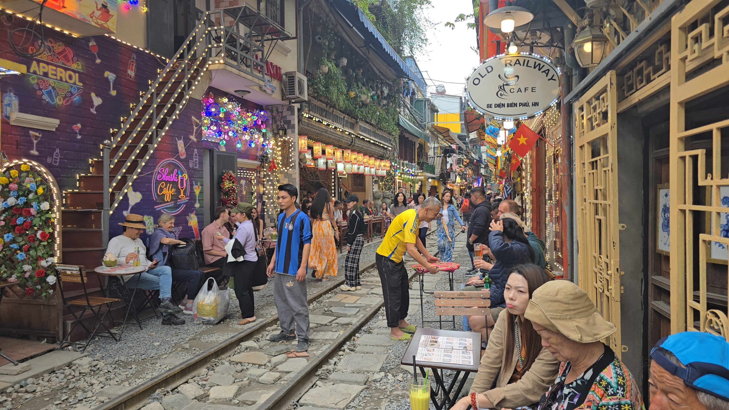 Terug naar het hotel gelopen met een stop bij Hanoi Train Street.