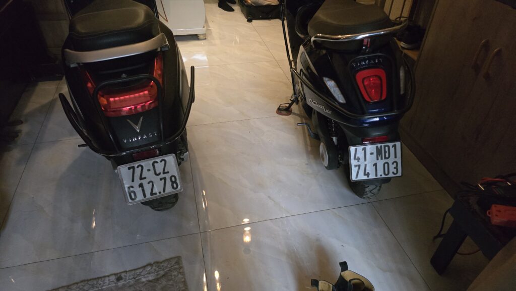 Er rijden erg veel elektrische scooters van het Vietnamese merk Vinfast.