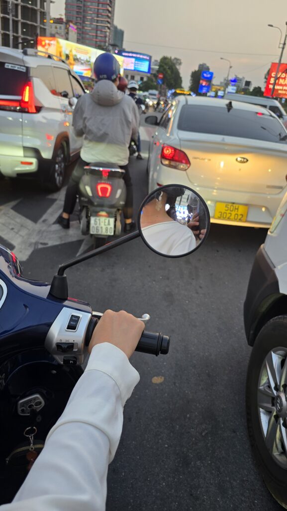Zelf rijd ik wel op mijn eigen elektrische scooter in Saigon maar het heeft maanden geduurd voor ik dat aandurfde en vervolgens nog eens maanden voor ik mij veilig voelde.